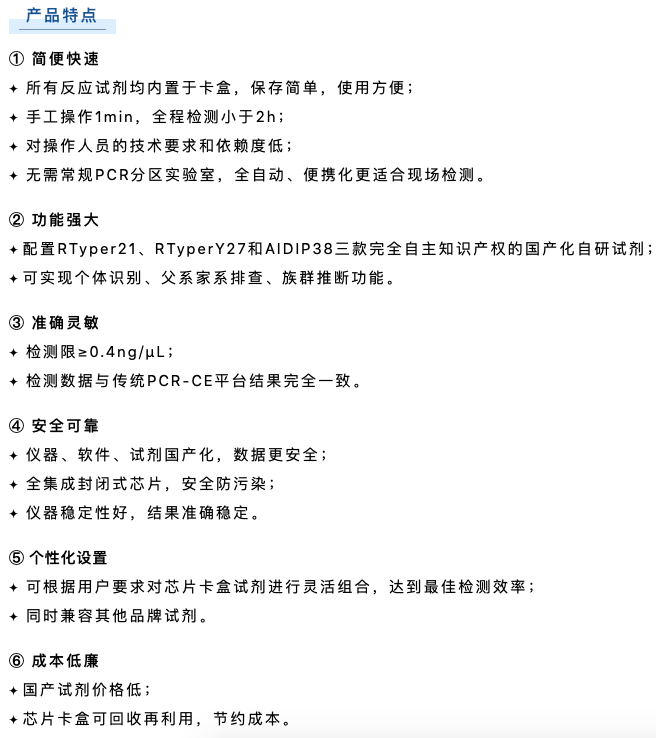 博奧晶典Quick TargSeq全集成自動化現(xiàn)場快速DNA檢測系統(tǒng)是由公安部鑒定中心聯(lián)合清華大學、博奧生物集團、北京博奧晶典生物技術(shù)有限公司共同開發(fā)的國內(nèi)第一款具有完全自主知識產(chǎn)權(quán)的全集成自動化現(xiàn)場快速DNA檢測系統(tǒng)。該系統(tǒng)采用模塊化微流控芯片技術(shù),將樣本前處理、多重 PCR 擴增和毛細管電泳全過程集成于一體,實現(xiàn) 2 小時“樣本進-結(jié)果出”的法醫(yī) DNA 現(xiàn)場快速檢測,可在野外、車載等非實驗室環(huán)境下運行,為我國公安機關(guān)現(xiàn)場犯罪偵破、海關(guān)出入境檢查、重大公共安全事件的快速處置增添強勁利器。目前,博奧晶典DNA快檢系統(tǒng)已遠銷俄羅斯、岡比亞等國,以先進的技術(shù)裝備支持刑事科學技術(shù)邁向新臺階。